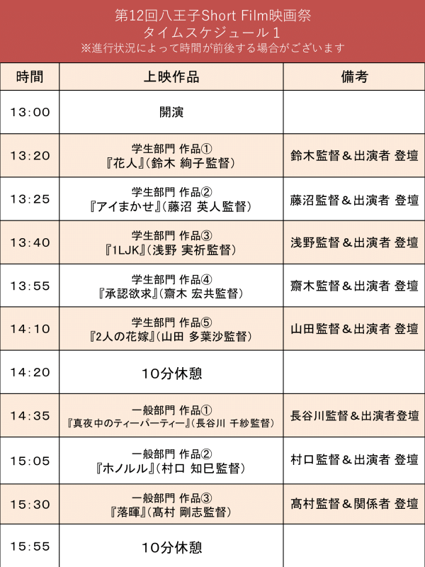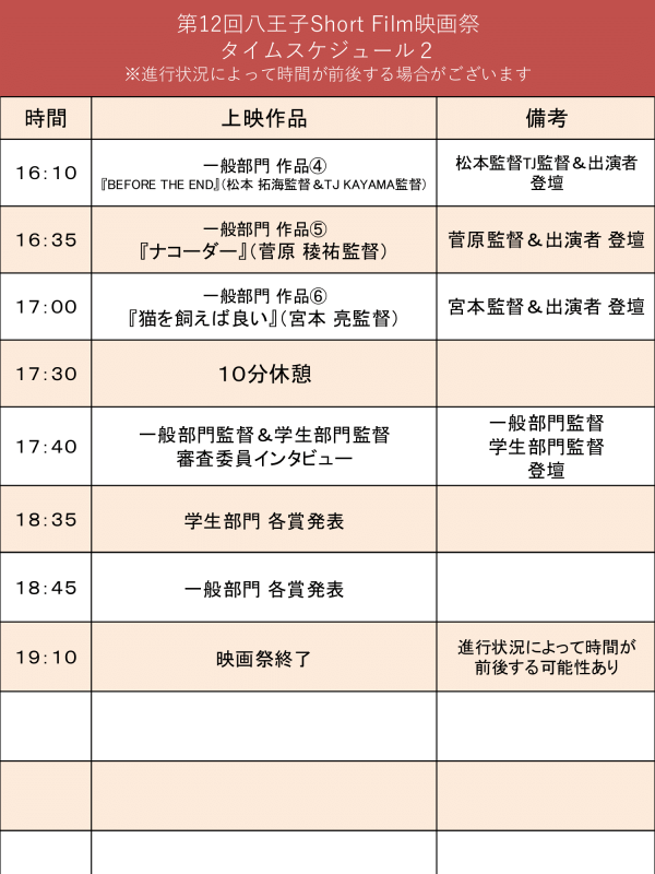 八王子市民や映画ファンの皆さまをはじめ、多くの方々にこの映画祭に親しんで頂きたいとの思いを込め、どなたでも最終審査の作品全て、また表彰式の模様をご覧になれるようにご招待いたします。